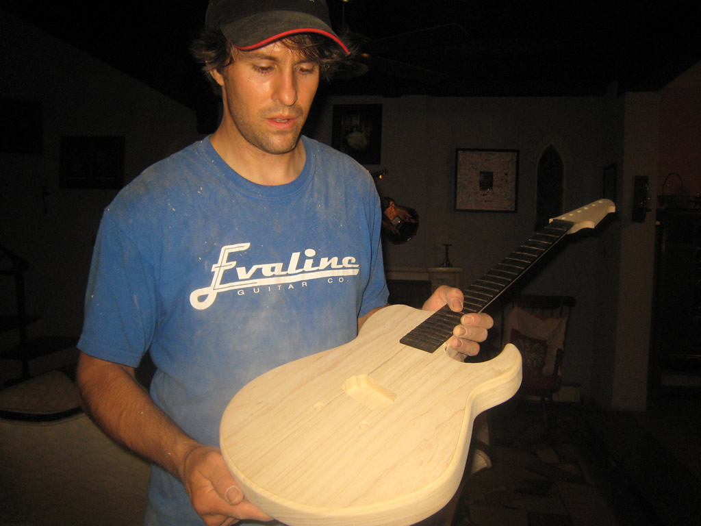Today, the Evaline Guitar Company has expanded far beyond its humble beginnings. We have a new 2000 square foot guitar carving/building facility and quite a few Marque endorsed guitarists that proudly play our guitars built specifically FOR them. And though we've grown, our philosophy has not and will not change. We still hand craft them one-at-a-time. We still build them for the individual player, not for the mass quantities. Wether that player is a multi-platinum recording artist, or just a guitarist in a local cover-band, we want to, and will create YOUR dream guitar!